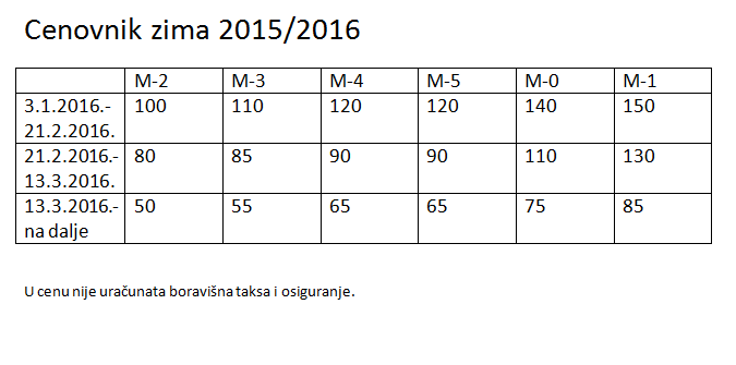 Cene su navedene u evrima za najam apartmana po danu/noćenju